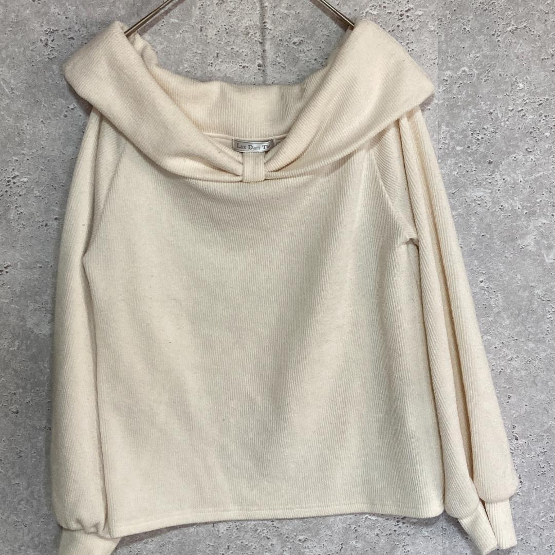 - Lax Dan Tia(L)リボンオフショルダーカットソー*伸縮性*透け感*白