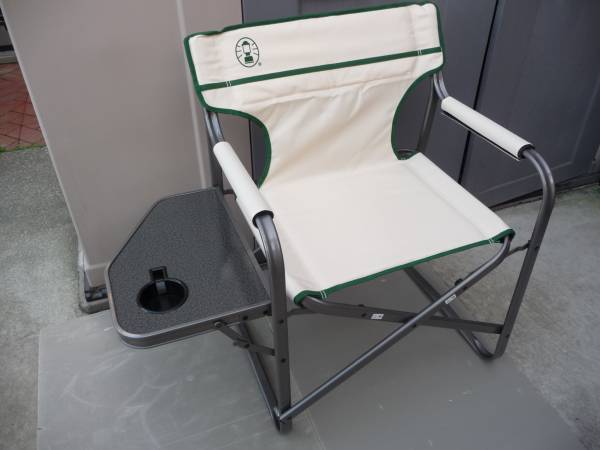 - コールマン サイド テーブル付 デッキ ディレクター チェア イス ドリンク ホルダー付 アイボリー 白色/緑モール 限定 希少カラー