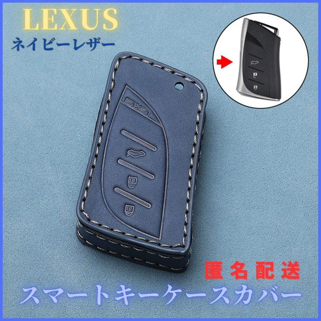 - キーケースカバー LEXUSレクサスUX200 UX250h LC500 LS500 RZ450 RX350 ES350 F SPORT NX 2018-2023 LC LS UX ES スマートキーレザー本革紺
