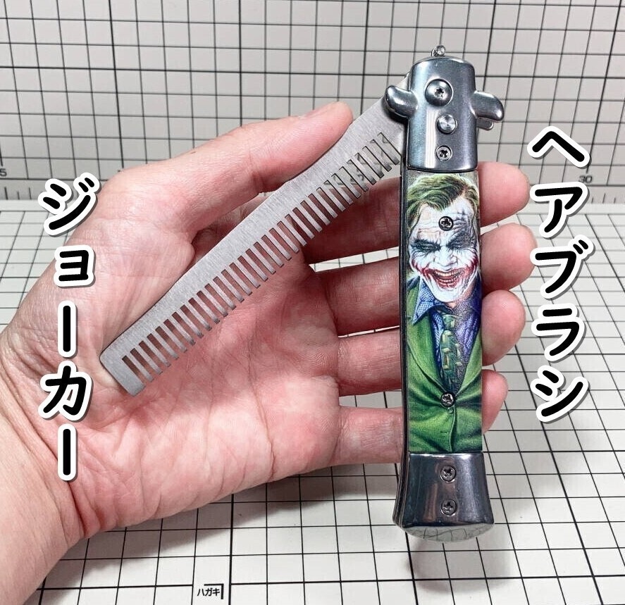 > ▲棚:V_H7【メタル製 ヘアブラシ ジョーカー (ダークナイト、バットマン:ヒース・レジャー) 折りたたみナイフ形】sa_wjig