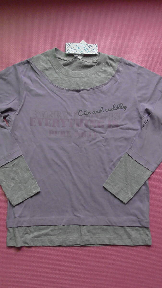 - 新品 150 重ね着風 長袖Tシャツ 紫 グレー 7分袖レイヤード風 英字ロゴプリントTシャツ 綿100% 小学生 中学生 女の子 秋物 春物 送料無料