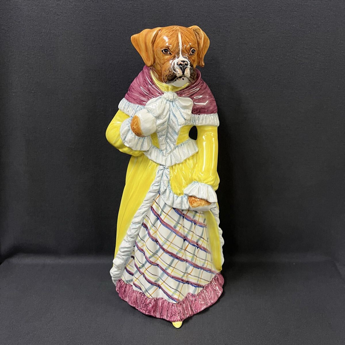 - RONZAN Made in Italy イタリア製フィギュリン 犬 貴婦人 高さ40cm/インテリア オブジェ 置物 陶器人形 動物 イヌ 茶色 黄色