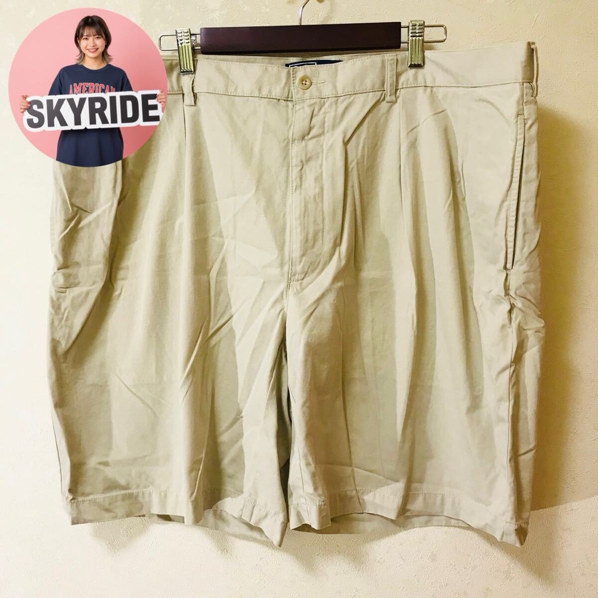 - 【人気】Polo Ralph Lauren ポロラルフローレン 00s メンズ ハーフパンツ ベージュ 42 ビッグシルエット ワンポイントロゴ 古着 #TT0298