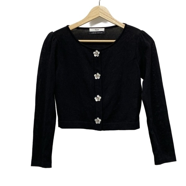 - ルネ Rene カーディガン サイズ34 S - 黒 レディース 長袖/ラインストーン/パール/フラワー(花) 美品 トップス