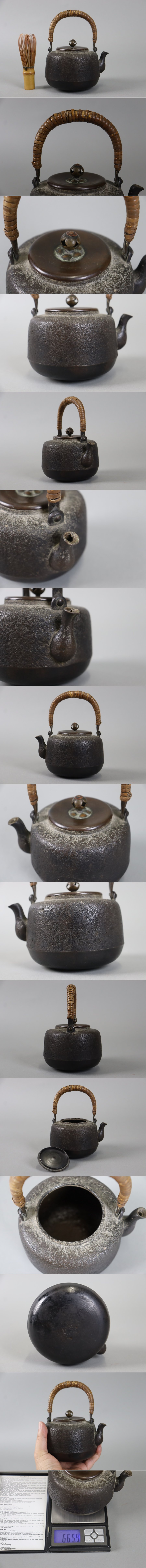 - 時代金工 小振 銅瓶 660g 煎茶道具 /湯沸 急須 鉄瓶 細密細工 古美術品[d957]