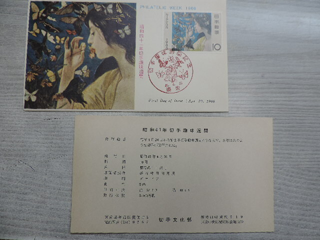 - ★「蝶」藤島武二★ 切手趣味週間 初日カバー 昭和41年4月20日・東京 10円切手 切手文化部発行