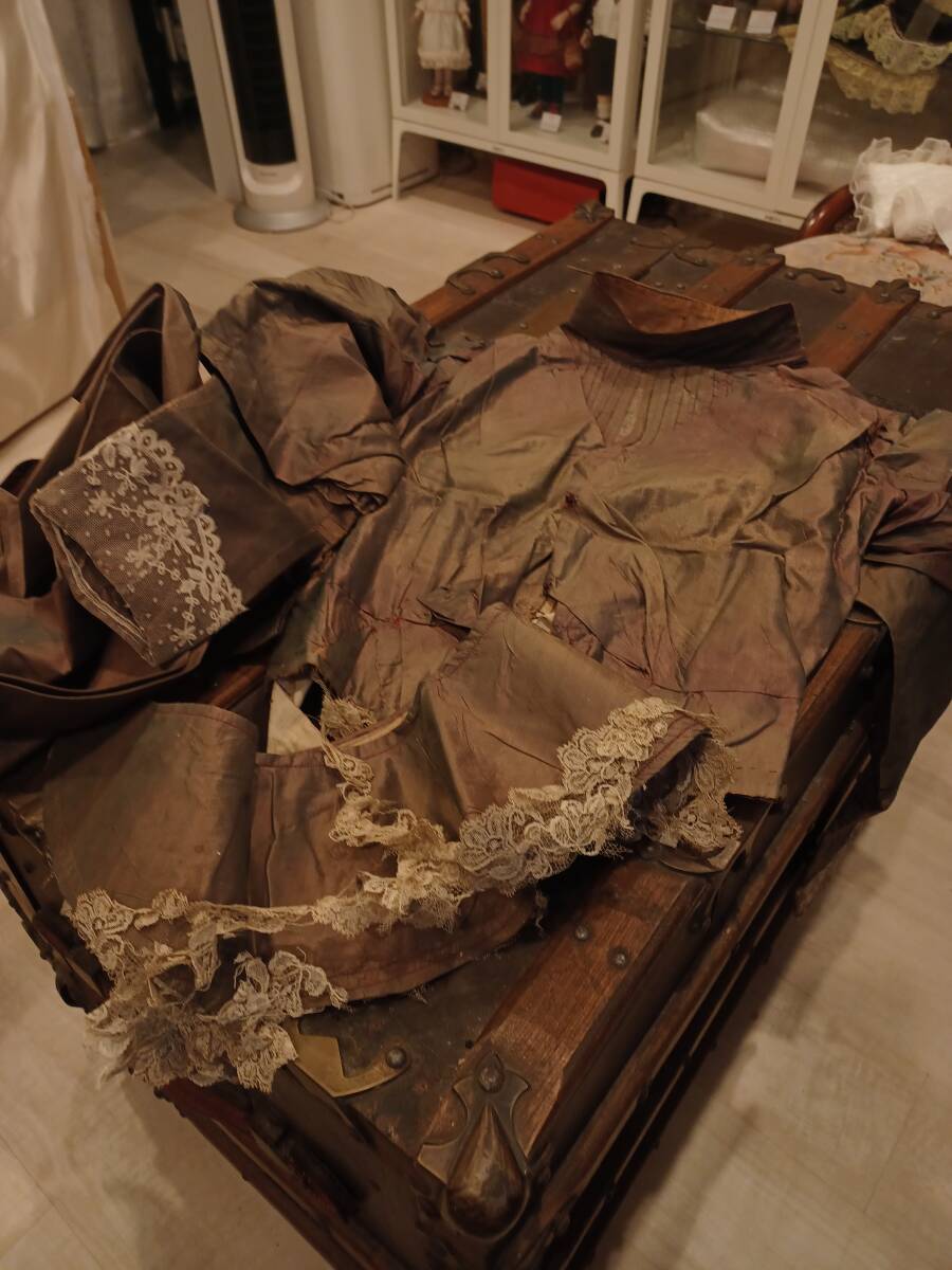 - ≪特価≫ お洋服 生地 お人形 ビスクドール リプロダクションドール ドレス アンティーク ヴィンテージ シルク