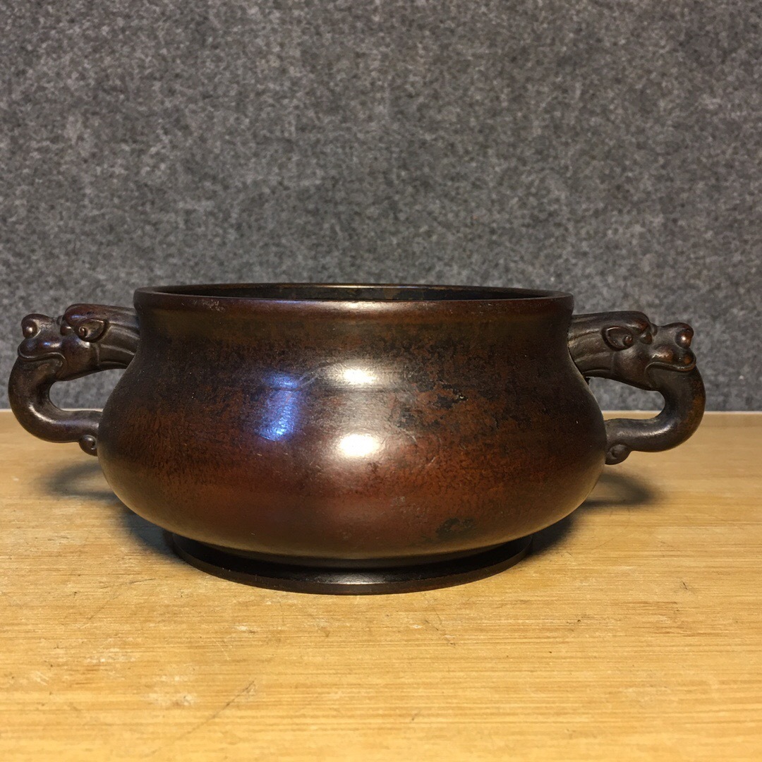 - 『館蔵珍品 銅製 雙獣耳 熏香炉 置物 賞物』稀少珍蔵品 古賞物 貴重物品 収蔵品 中国古美術 時代物 古董品