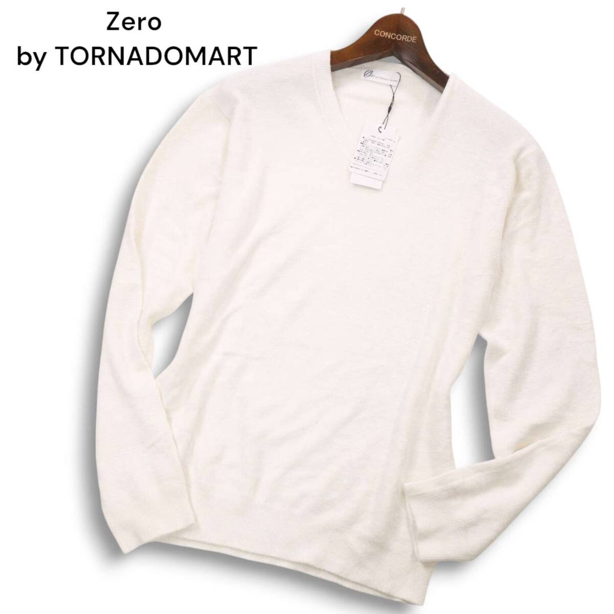 - 【新品 未使用】 Zero by TORNADOMART トルネードマート 秋冬 モールヤーン★ Vネック ニット セーター Sz.L メンズ 白