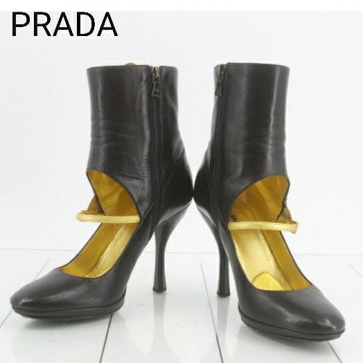 - PRADA プラダ 黒 ハイヒール アンクルブーツ パンプス