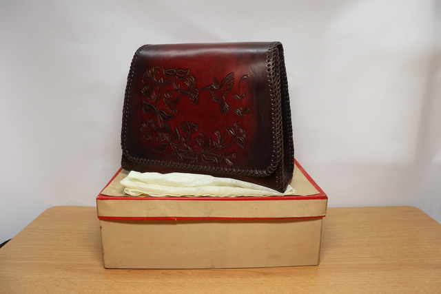 - 美品 カービングレザー カバン 花柄 ハチドリ ヴィンテージ アンティーク 本革 ショルダーバッグ ハンドメイド おしゃれ レトロ 手彫り?