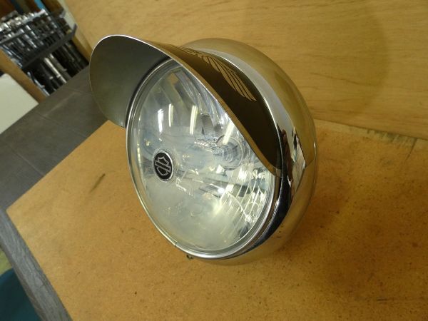 > ★No.4694「倉庫整理大セール! ハーレーダビッドソン 純正 7inc クロームマルチリフレクター ヘッドライト バイザー付 点灯OK」格安価格!
