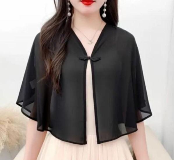 - 結婚式パーティーフォーマルシースルードレスシフォンケープショールストール肩掛け黒ブラック2