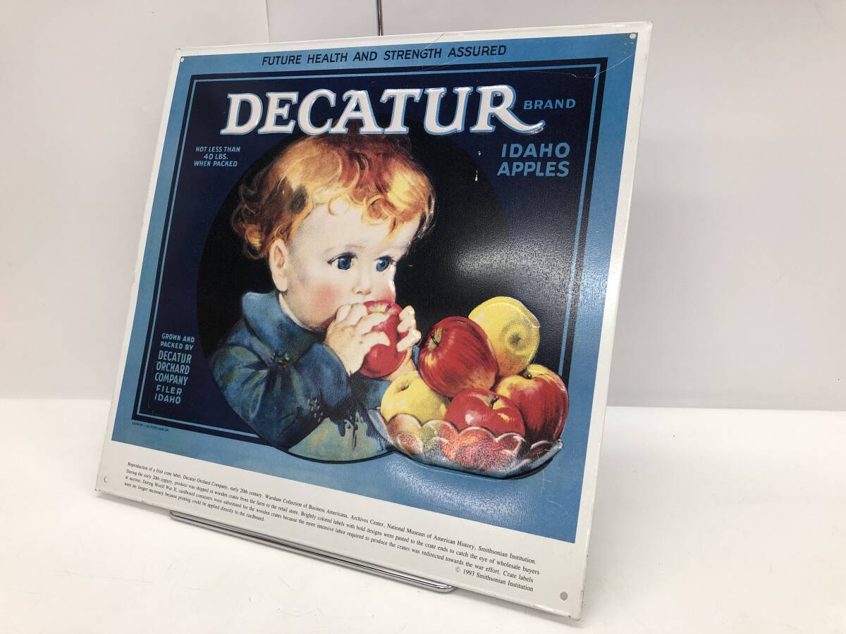 - スチール看板 ブリキ看板 プレート りんごをかじる赤ちゃん インテリア雑貨 ガーデニング アンティーク アメリカン雑貨 壁飾り レトロ