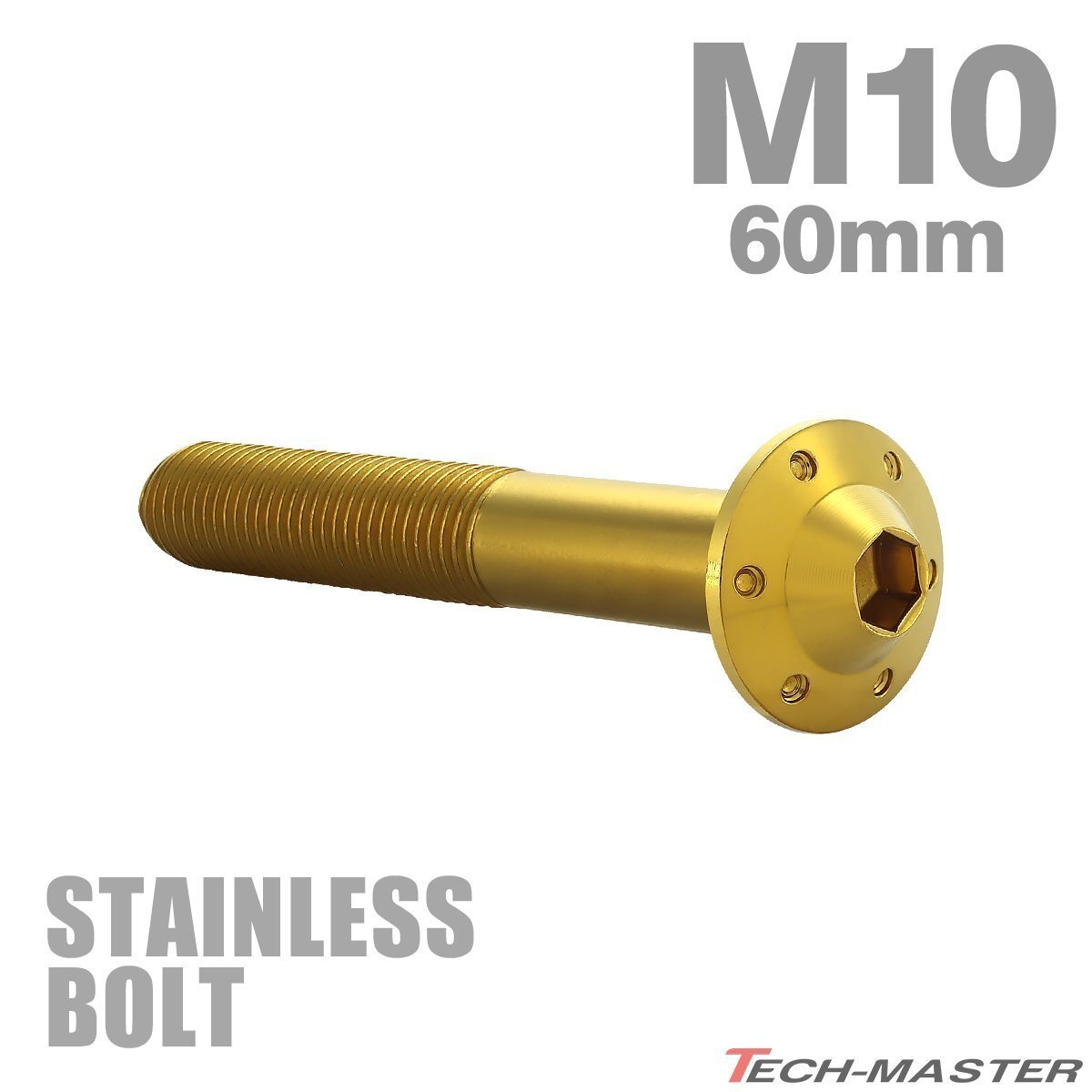 - M10×60mm P1.25 ボタンボルト ステップホールヘッド ステンレス ゴールド カウル フェンダー 車 バイク カスタム 1個 TR0661