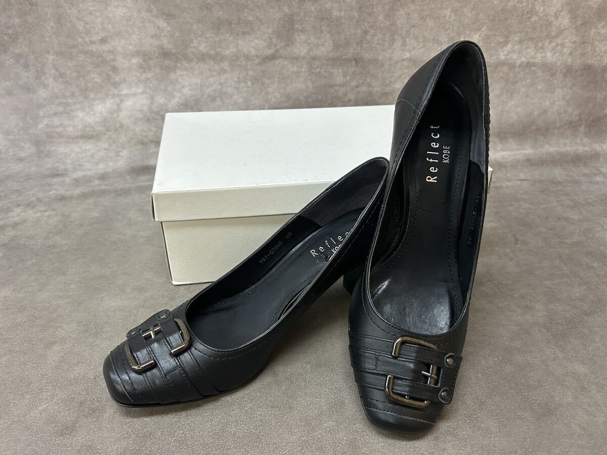 - リフレクトreflect kobe パンプス 24cm 黒 ベルトデザイン ブラック ヒール 中古