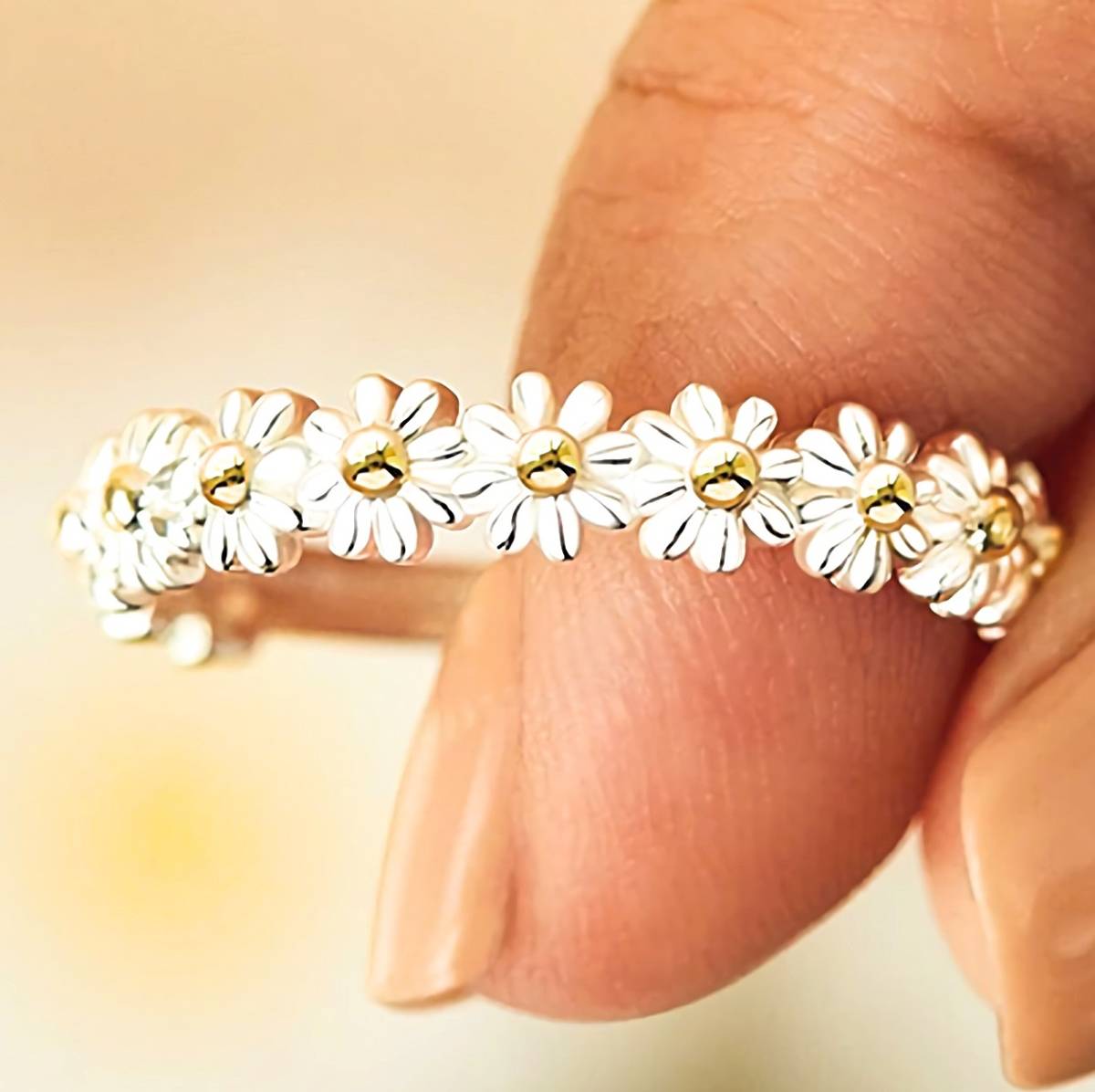 - 新品★送料無料★黄金の華フリーサイズ 花冠デイジー プラチナ仕上 925シルバーリング 誕生日プレゼント旅行連休秋祭冬ギフト国内発送