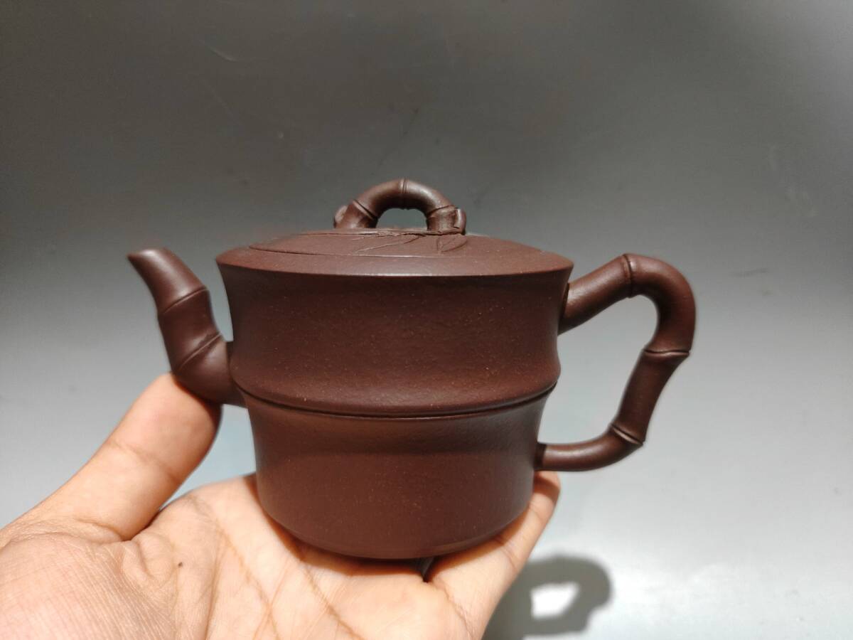 - 【超珍館蔵】紫砂壺 竹韻壺 朱可心款 紫泥 茶具 茶道品 置物 賞物 古賞物 古董品 古美術品 時代物 旧家蔵出 稀少珍蔵品