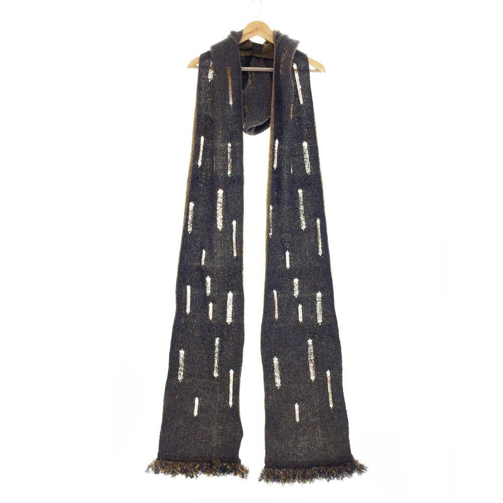 > ◆2022AW 未使用 マイナス Minus フード付き ダメージ ロングマフラー メンズ ブルー×イエロー マスタードDAMAGED LONG MUFFLER 6AB/93710