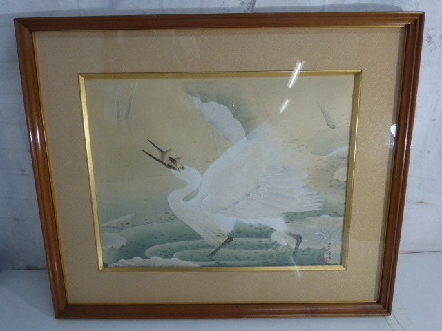- む288.榊原紫みね 蓮池白鷲 色彩木版画 日本画 No.5 【真作】刷込サイン 花鳥画