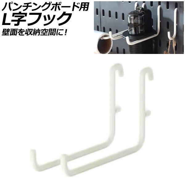 - パンチングボード用 L字フック ホワイト プラスチック製 壁面を収納空間に!ボードの穴に差し込むだけの簡単取付け