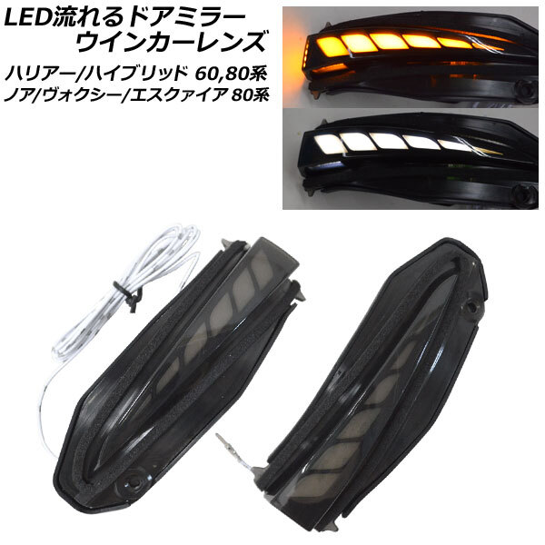 > LED流れるドアミラーウインカーレンズ トヨタ ノア/ヴォクシー/エスクァイア 80系 スモークレンズ デイライト機能付き 入数:1セット(左右)