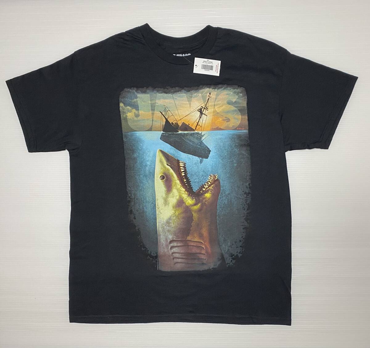 > JAWS ジョーズ Tシャツ size: L デッドストック 未使用品 映画 ムービー オルカ号 ホホジロザメ