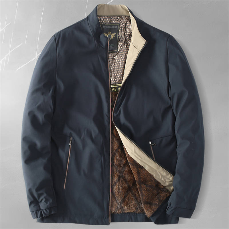 > A451-2XL紺色 中綿ジャケット メンズ 折り襟 ブルゾン 裏起毛 暖かい 軽量 撥水 防寒 通勤 厚手 冬服 新品 オフィス カジュアル ジャンパー