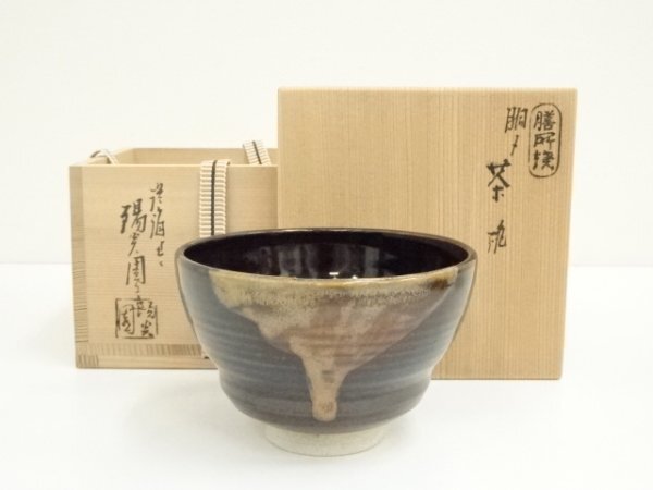 - ys7484943; 膳所焼 岩崎新定造 胴締茶碗(共箱)【道】