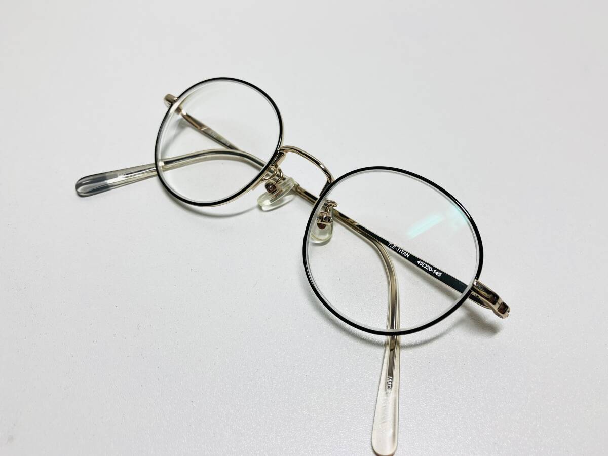 - 07◆ANU AN-18 T:B-TITAN アニュー アイウェア ボストン型 ブラックxホワイトゴールド系 ビンテージ 眼鏡 美品級