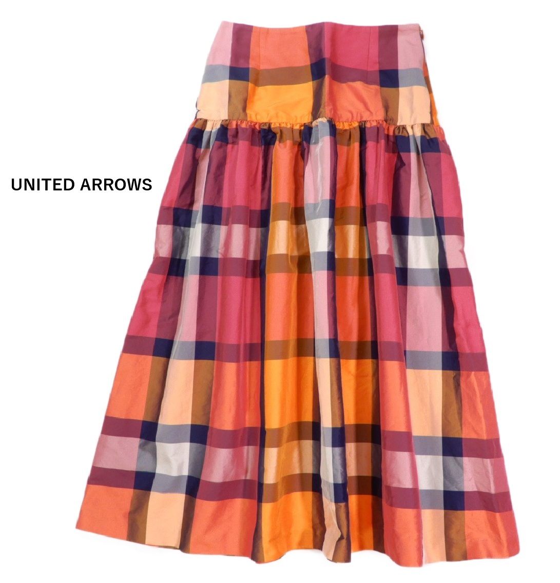 - ユナイテッドアローズ UNITED ARROWS 4.1万 タフタ チェック フレア スカート 38