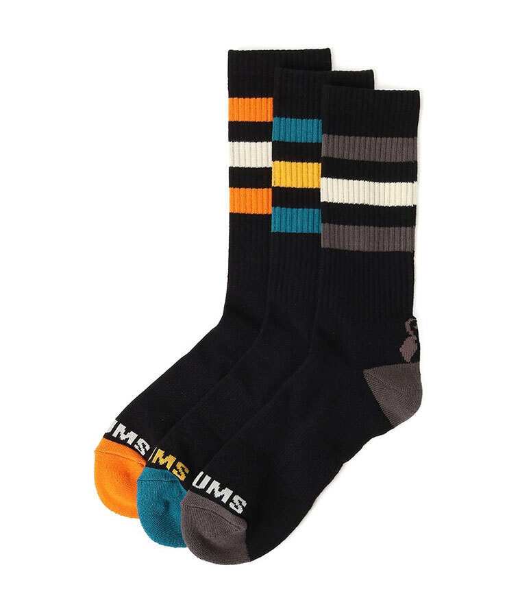 > <Mサイズ><ブラック>チャムス ソックス 靴下 CHUMS 3Pブービーミディアムソックス 3P Booby Medium Socks CH06-1129 3足セット
