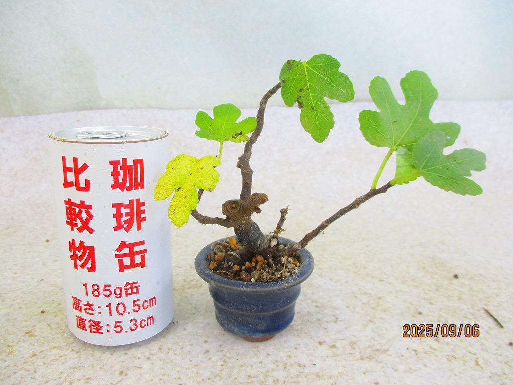 - [緑の市場] ミニ盆栽 無花果(9669瑠璃釉丸鉢)全高:15㎝【小型送料】*同梱包対応「まとめて取引」厳守*60サイズ送料明記