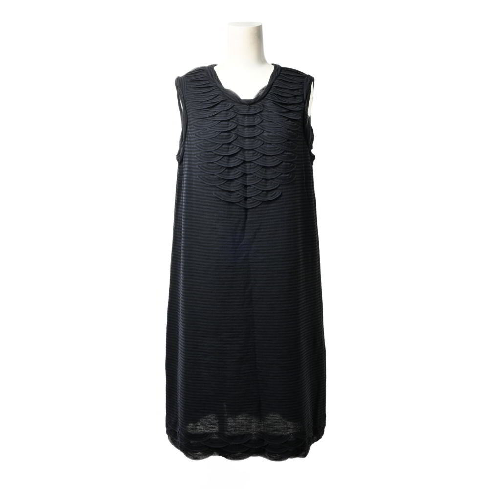 > 美品 CHANEL P41420 バック ココボタン ノースリーブ ボーダー ワンピース 40 ブラック シャネル KL4BHACA89