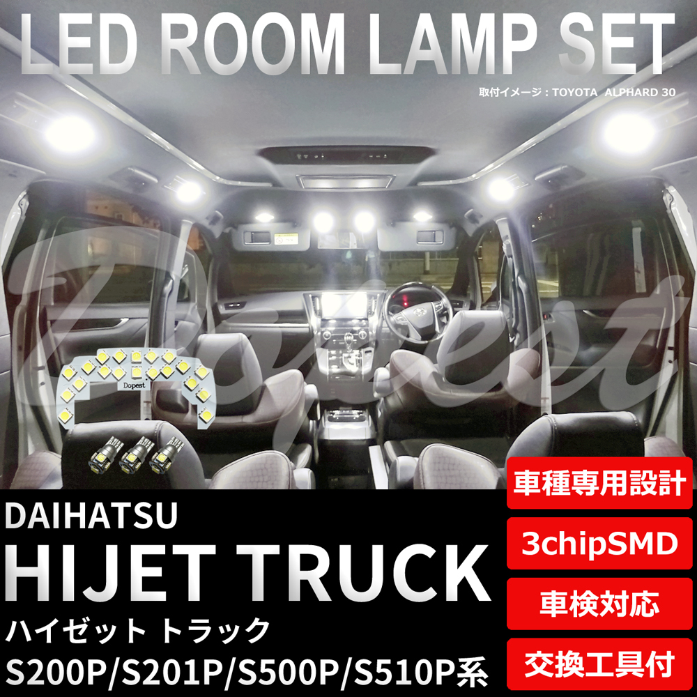 > ハイゼットトラック LEDルームランプセット S200/201/500/510P系 TYPE1 ナンバー灯T10専用 室内灯 6500K純白 専用設計 車検対応 車内灯