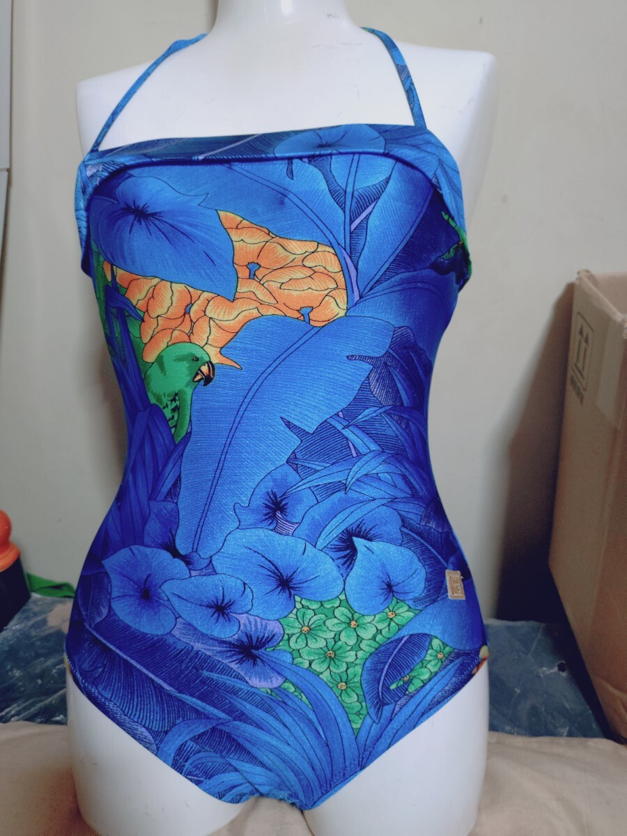 - M4511◆cecile◆セレブなブルー系花柄ワンピース水着◆9М