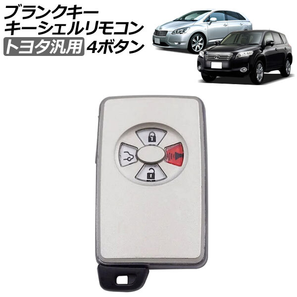 - ブランクキー/キーシェルリモコン シルバー 4ボタン トヨタ 汎用 カローラアクシオ フィールダー ルミオン RAV4 マークXジオ など