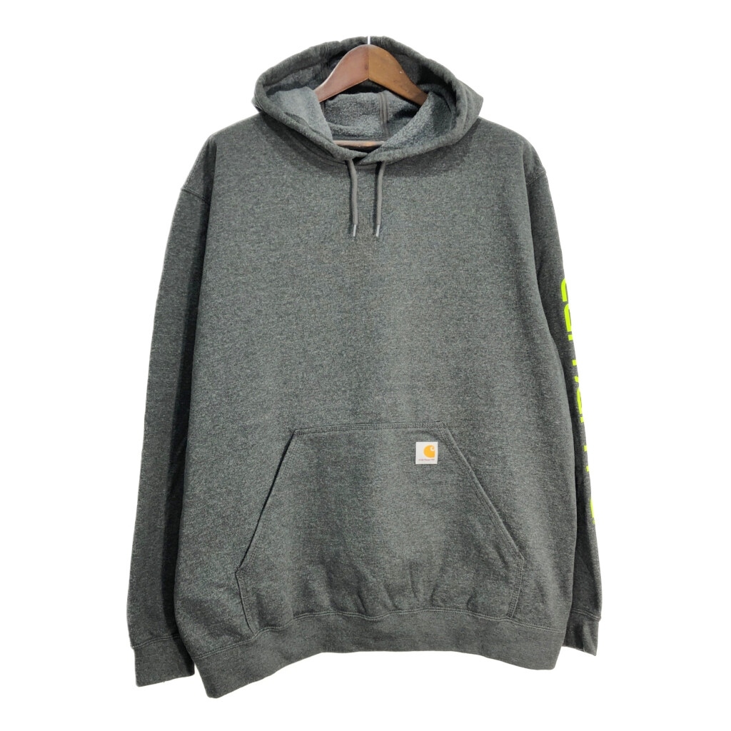 - Carhartt カーハート スウェット パーカー 袖プリント グレー(メンズ XL)中古 古着 t5255