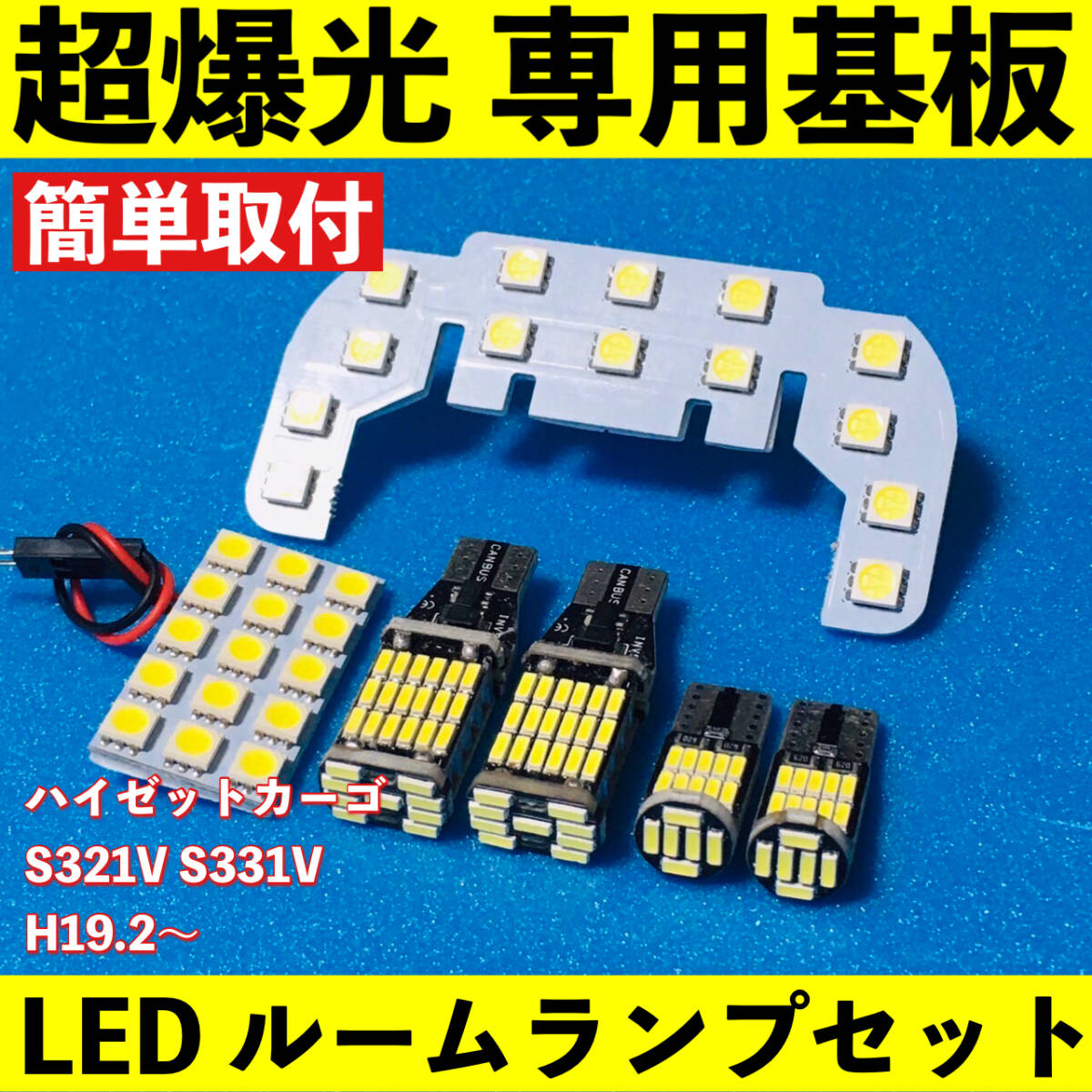 > ハイゼットカーゴ S321V S331V 超爆光 T10 LED ルームランプ 基板 専用形状 室内灯 バックランプ ナンバー灯 ライト ホワイト 6個セット