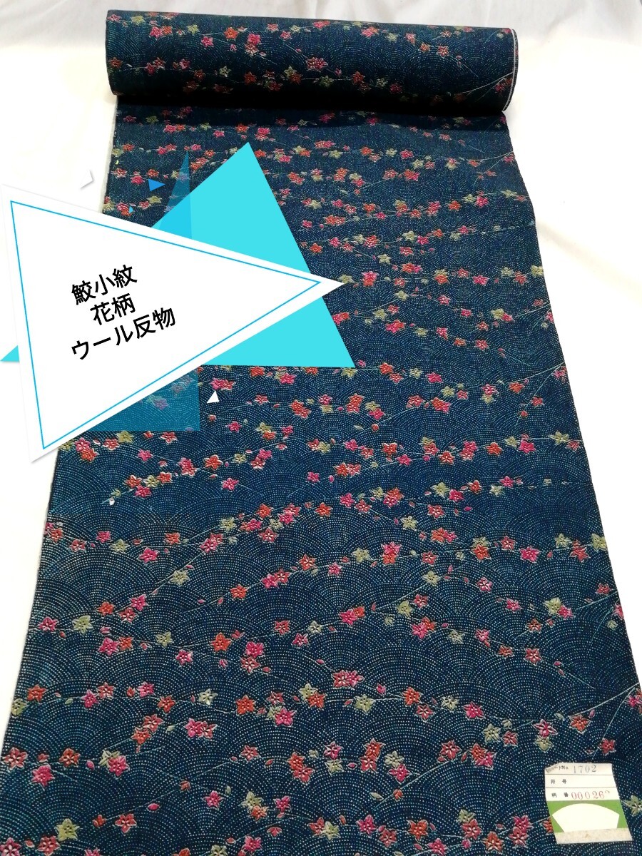 - g_t N483 [ウール反物リメイク/手芸材料] 鮫小紋花柄 反物 タンス保管品 ウール 反物です。張りがありしっとりとした素材の生地です。