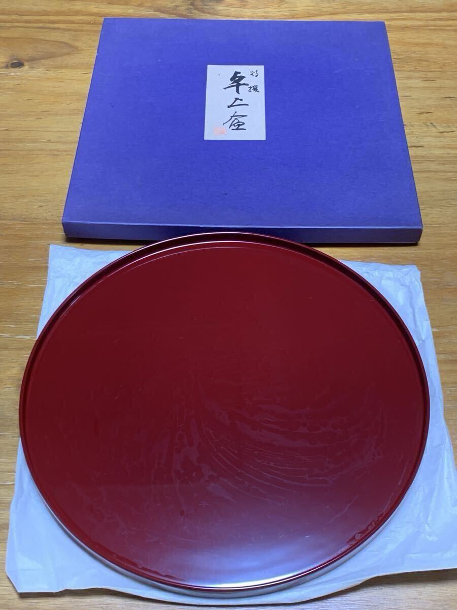 - 丸盆 漆器 赤 黒 お盆 直径30㎝ トレー 漆芸 茶道具 伝統工芸