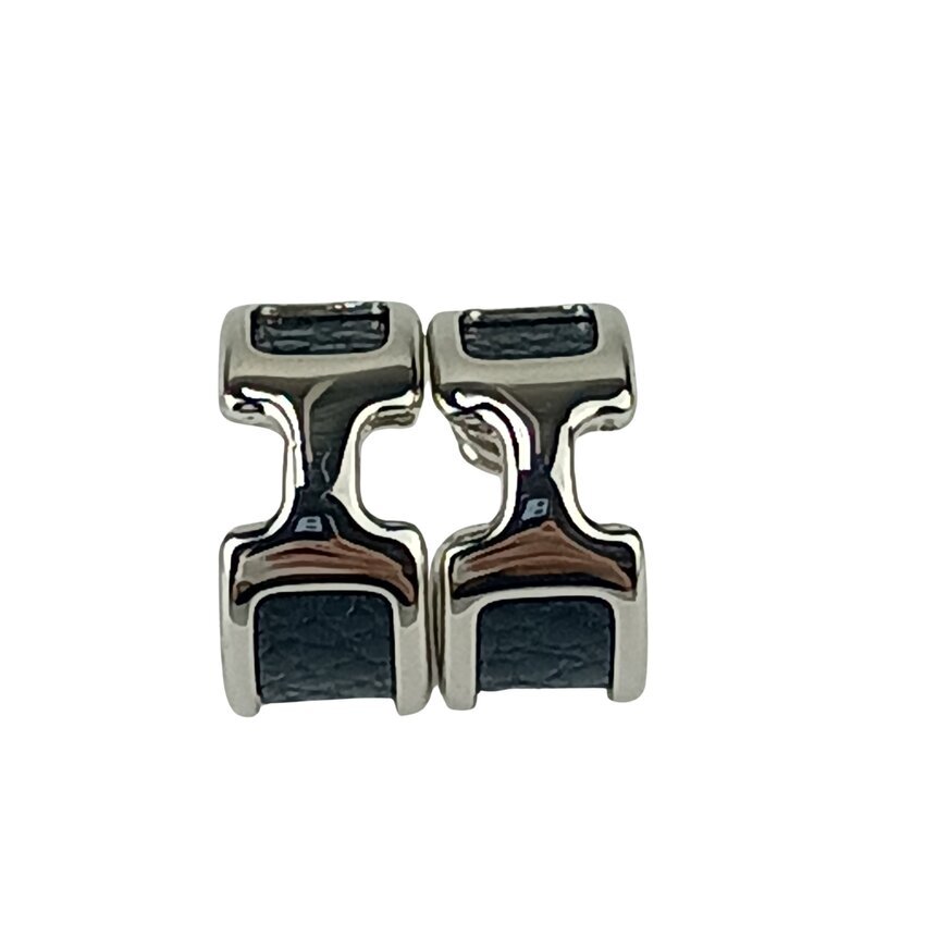 > エルメス ピアス オランプ PM メタル レザー - シルバー ブラック ファッションピアス 小物 ブランド【本物保証】
