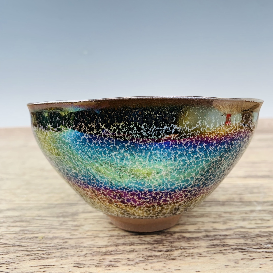 - 宋代風 古陶磁器 建窯 七彩光 油滴盞 黄金盞 盃 建盞 茶盞 酒碗 供御款 陶芸 磁器 時代物 東洋彫刻 旧家蔵出し 唐物 中国古玩 古美術品