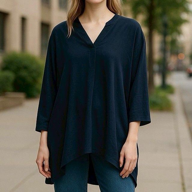 - 美品 a.v.v チュニック Lサイズ ネイビー Vネック 五分袖 ギャザー