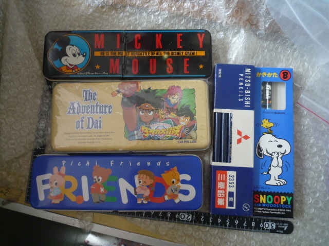 - 当時物 缶ペンケース カンペケース まとめて ミッキーマウス ダイの大冒険 ピーチフレンズ スヌーピー 鉛筆 現状渡し品