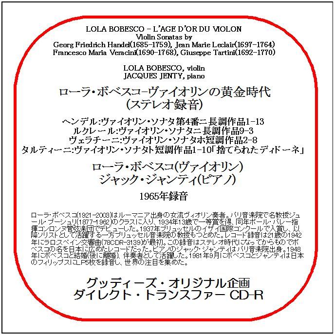 - ローラ・ボベスコ-ヴァイオリンの黄金時代(ステレオ録音)/送料無料/ダイレクト・トランスファー CD-R