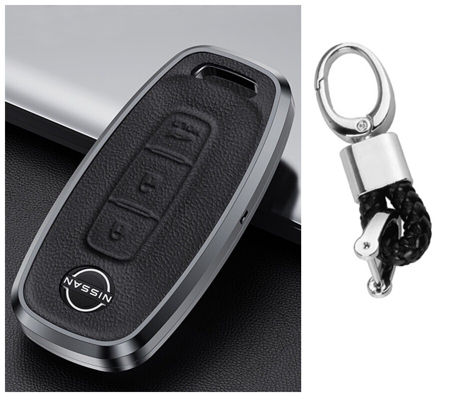 - 新品即決 送料無料 日産 アルミ 黒 本革 スマートキーケース キーカバー キーホルダー ニッサン サクラ アリア B9 エクストレイルT33系