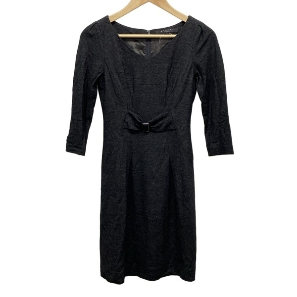 - マテリア MATERIA サイズ36 S - ダークグレー レディース Vネック/七分袖/ひざ丈/飾りベルト ワンピース