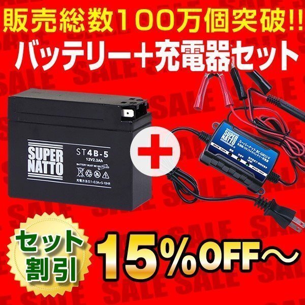 > お得★バイクバッテリー+充電器セット[YT4B-BS,GT4B-5互換] ST4B-5 シールド型