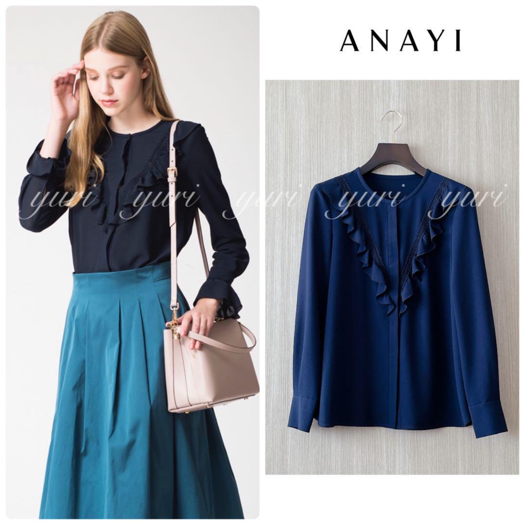 - 【258】アナイ クレープジョーゼットフリルブラウス 濃紺 36